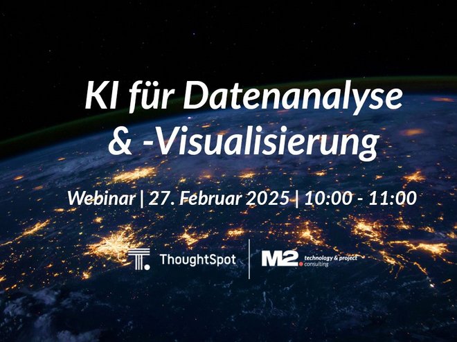 Im unserem Webinar "KI für Datenanalyse & -Visualisierung" am 27. Februar 2025 zeigen wir gemeinsam mit ThoughtSpot, wie Sie mit einem durchdachten Datenfundament und KI-gestützter Self-Service-Analyse das volle Potenzial Ihrer Daten ausschöpfen.