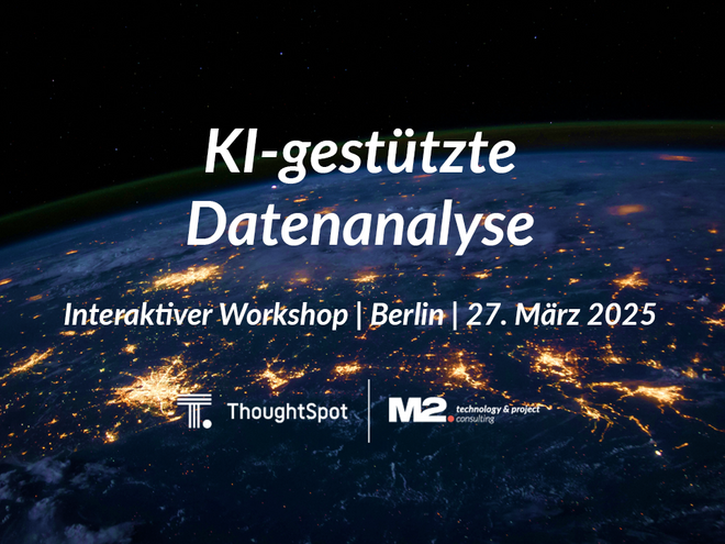 Im interaktiven Workshop "KI-gestützte Datenanalyse" am 27. März 2025 in Berlin zeigen wir gemeinsam mit ThoughtSpot, wie mit natürlicher Sprache Geschäftsfragen beantwortet und durch KI-Algorithmen detaillierte Analysen durchgeführt werden können. Praxisnahe Demonstrationen, Austausch mit Expert*innen und anderen Teilnehmenden.