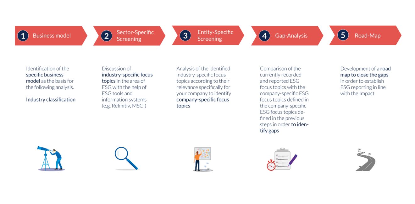 Our solutions start with a comprehensive consultation to better understand your target picture and actually meet your requirements. The topic of ESG cannot be met with standard solutions. The requirements are too specific for each industry and company. We work with you to develop a target image that meets your requirements. Our modular approach is a good way to deal with a core topic depending on the focus, whereby the other modules can be added flexibly at an earlier or later stage. This is why we call the model ESG-Flex-Blueprint.