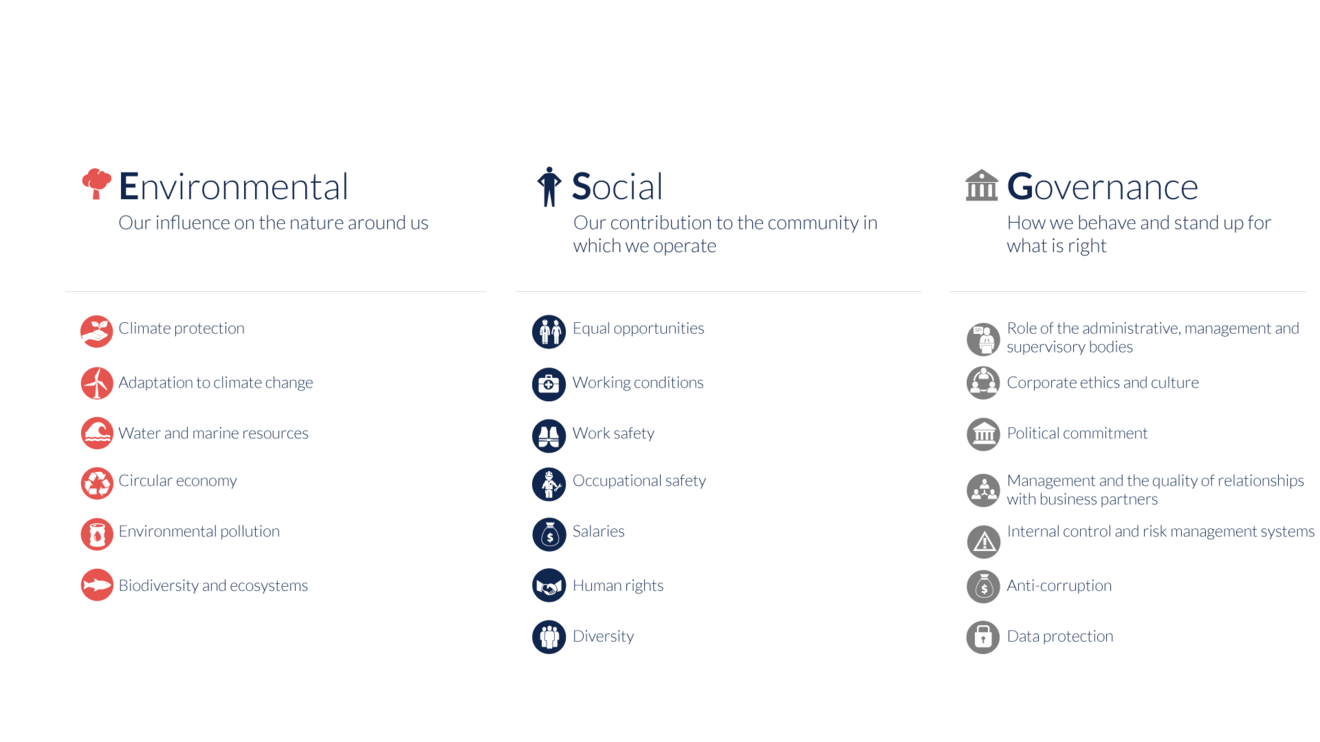 ESG is an abbreviation and stands for three areas in which companies can engage in sustainability.