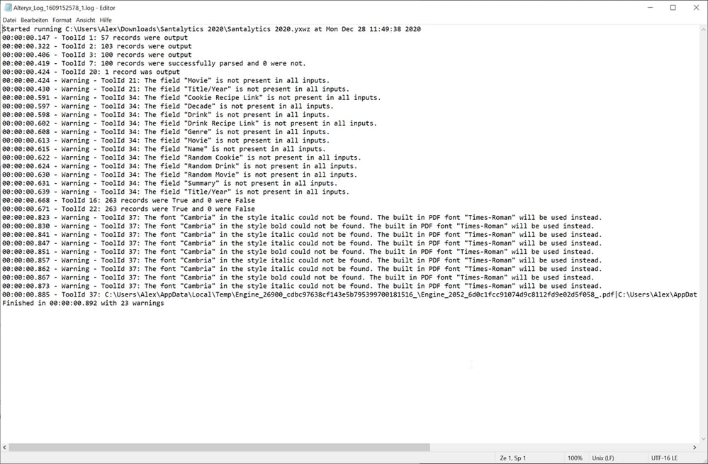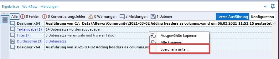 Typical for Alteryx, these log files can of course also be evaluated with an Alteryx workflow and analyses can be based on them. However, these hardly play a role with local logs, but come to the fore especially with an Alteryx server.