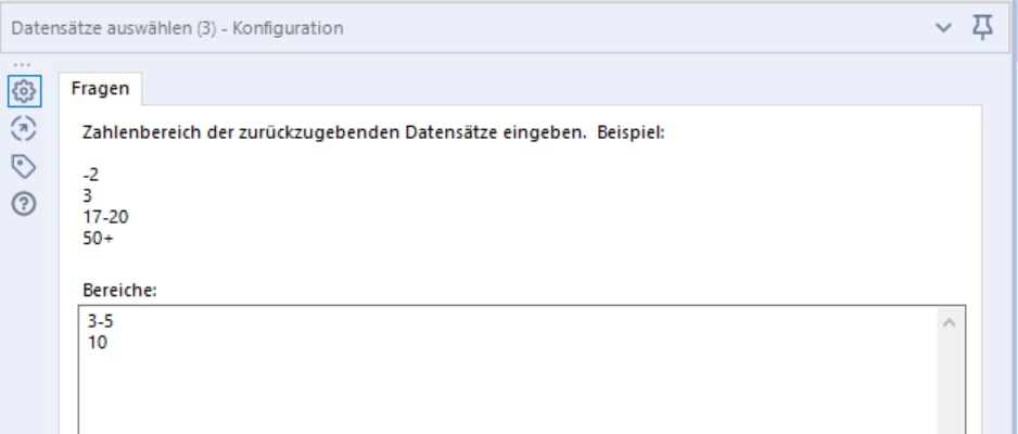 The key to success in this case is Select Records. With this, individual data rows or data row groups can be picked out of the data set. This is done simply via the row position - in the test it should therefore be ensured that these do not change during the test. The configuration of the tool is very simple: you can specify either a single row or a range per row.