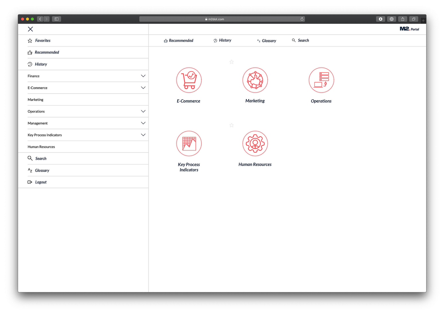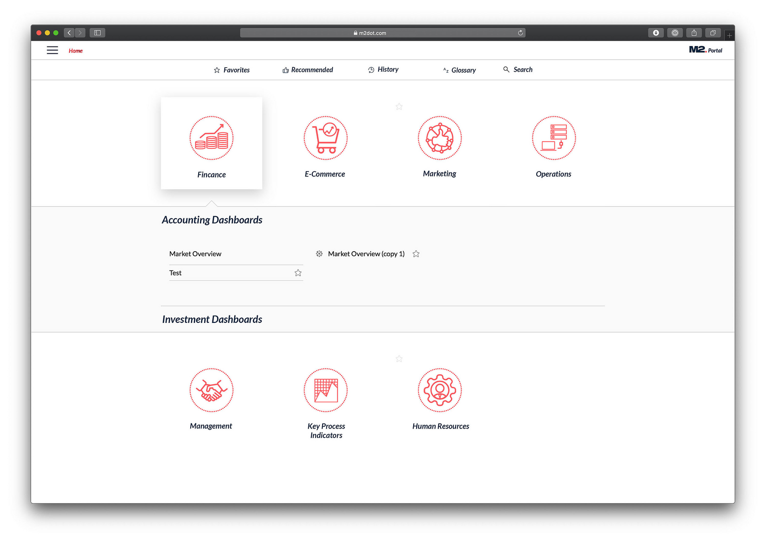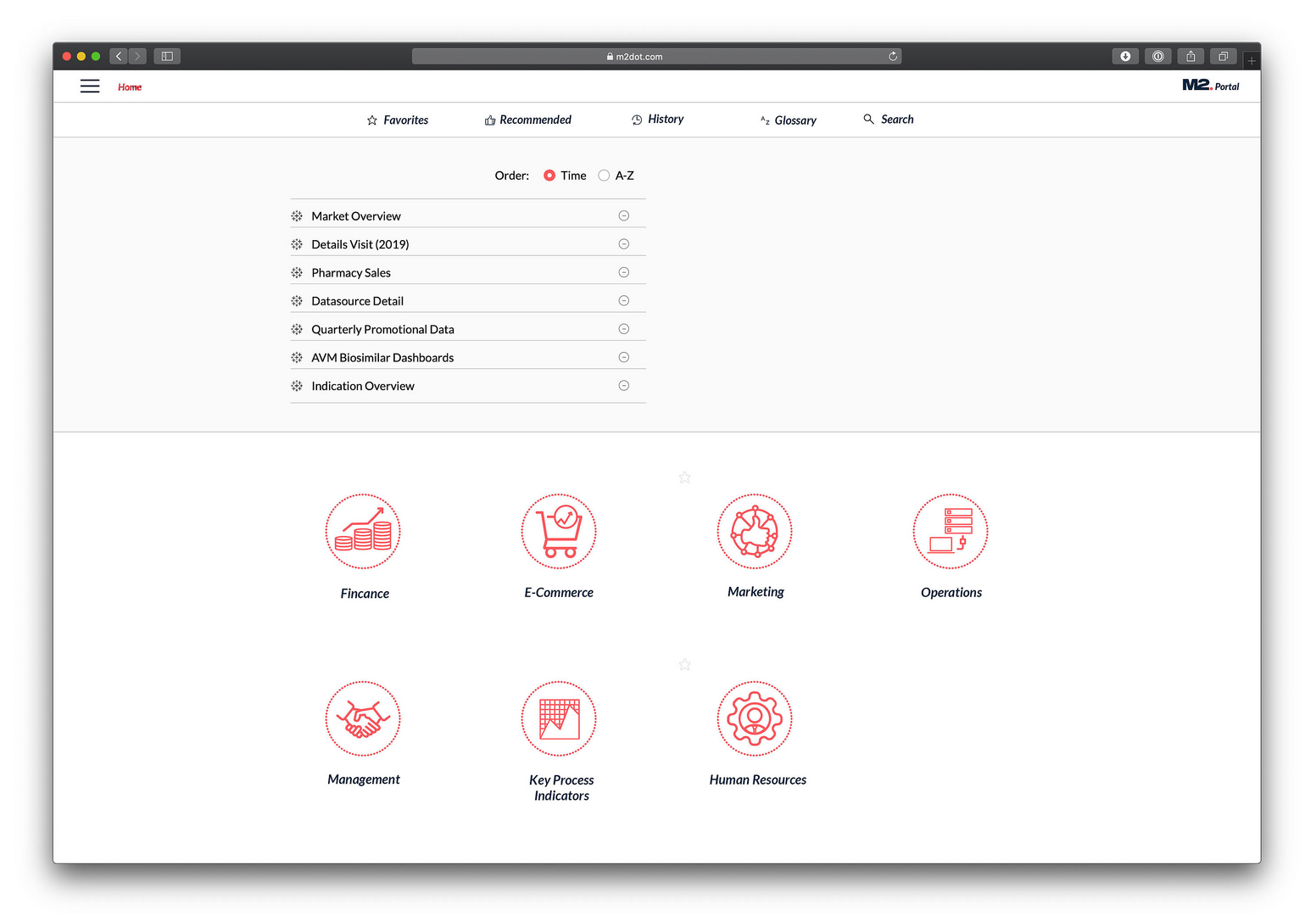 Das M2 Tableau Portal erlaubt eine Kategorisierung der Dashboards nach Inhalt oder Thema. Das Design des M2 Tableau Portals kann zudem individuell an die Corporate Identity des Unternehmens anzupassen.